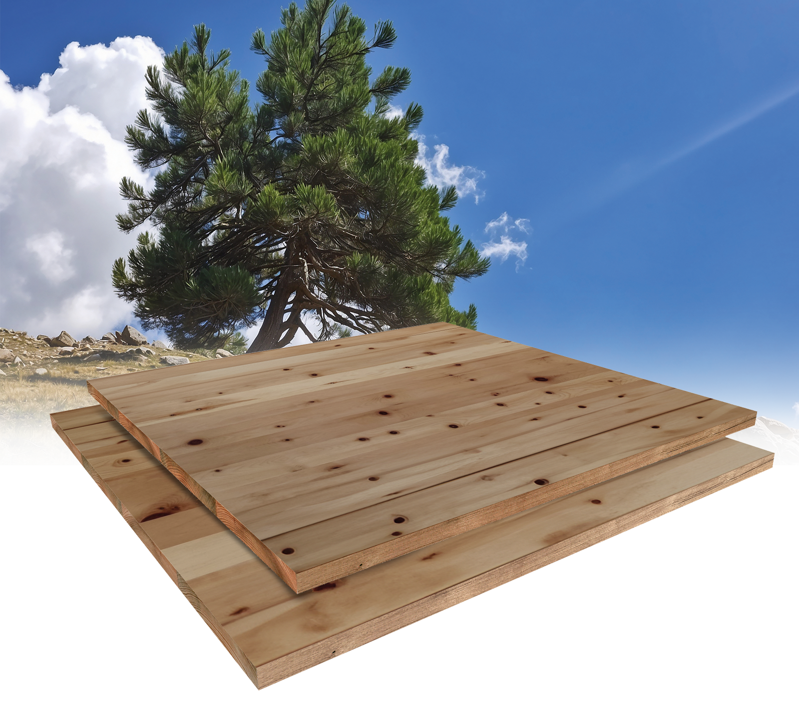 „Erleben Sie die Wärme und Reinheit von Douglas Fiammato (Flammende Douglasie). Ein Holz frei von Knoten, das mit seinen sanften Kurven die Ästhetik jedes Raumes unterstreicht und eine klare, ausdrucksstarke Umgebung schafft.“
